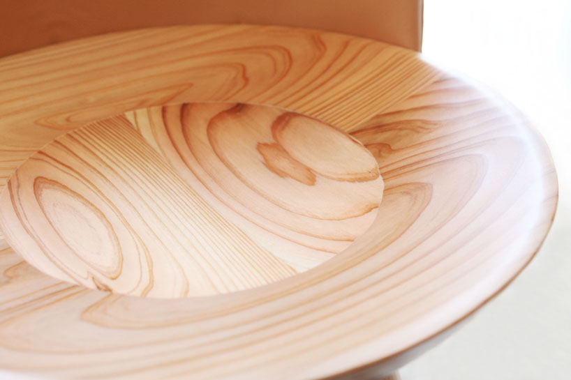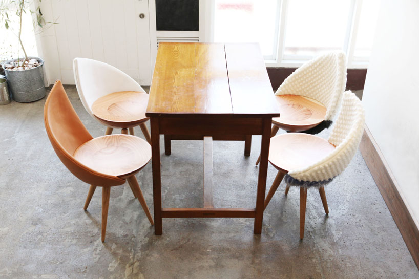 the wooden chair expresses the notion of wrapping into a nest with its concaved seat pan.